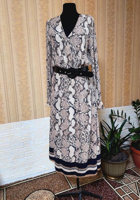 Шикарное, актуальное, вечернее платье свободного кроя в змеиный принт. Моделька идет на запах, без пояска (подойдет любой), при необходимости подарю. Ткань вискоза. Длина 133см, пог 50см, пот 48см, рукав 68см.