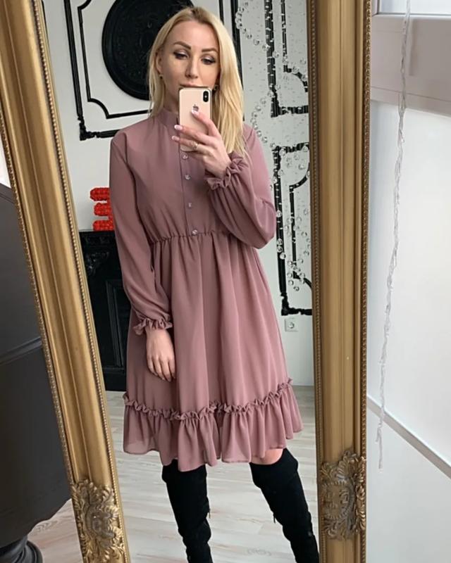 Сукня 👗 свободного кроя с завышенной талией. Воротник стойка. Спереди закрывается на пуговицы. Ткань шифон, снизу подкладка. Размеры: S,M,XL, XXL, 52