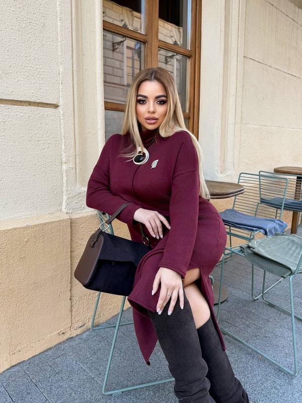 🔥🔥🔥НОВИНКА🔥🔥Шикарна тепла сукня+брошка у подарунок🎁❤️ Сукня з брошкою ▫️Модель 060VK ▫️Розміри : 46-48,50-52,54-56, 58-60, 62-64 ▫️Тканина : двостороння ангора Арктика ▫️Кольори : марсал, чорний, фісташка, капучино ▫️Сукня з довгим спущеним рукавом, ворот-стійка; плаття прикрашене декоративним швом по центру виробу, з боків розрізи. Брошка у подарунок ▫️Параметри моделі -батал ОГ110, ОТ88, ОС112, зріст 165см , на ній розмір 50-52. ▫️Параметри по зовнішньому шву Розмір 46-48 Плаття Об’єм грудей 108-118 Обʼєм талії 106-116 Обʼєм стегон 110-120 Довжина рукава від горловини 67 Довжина по спинці 113 Розмір 50-52 Плаття Об’єм грудей 114-124 Обʼєм талії 110-120 Обʼєм стегон 116-126 Довжина рукава від горловини 67 Довжина по спинці 113 Висота горловини 16 Розмір 54-56 Плаття Об’єм грудей 120-130 Обʼєм талії 114-124 Обʼєм стегон 124-134 Довжина рукава від горловини 68 Довжина по спинці 114 Розмір 58-60 Плаття Об’єм грудей 130-140 Обʼєм талії 124-134 Обʼєм стегон 132-142 Довжина рукава від горловини 69 Довжина по спинці 115 Розмір 62-64 Плаття Об’єм грудей 136-146 Обʼєм талії 132-142 Обʼєм стегон 138-148 Довжина рукава від горловини 70 Довжина по спинці 116