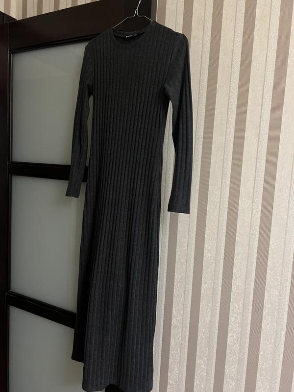 Очень классное, теплое, мягкое платье в рубчик темно серого цвета от известного бренда Stradivarius. Одягала один раз