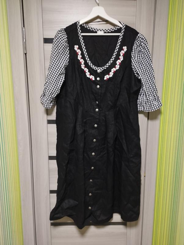 Традиційна лляна сукня. Розмір не вказано. ПОГ 60. ПОТ 54 .ПОБ 94. Довжина виробу 118 см. Рукав короткий. В ідеальному стані