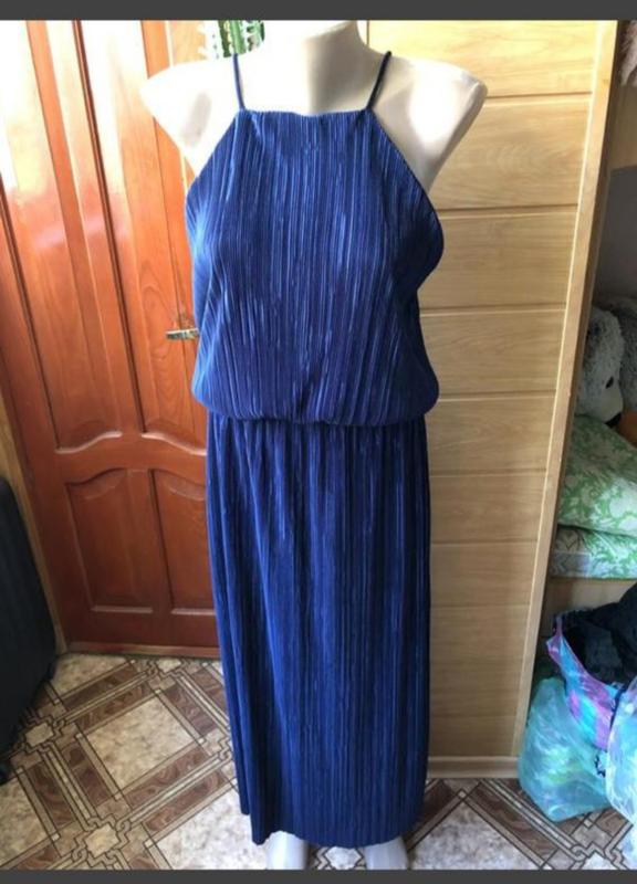 Очень классный сарафан,не мнётся,не просвещает.Очень красивый цвет. Размер 12 Полуобьем груди 46 см,тянется Полуобьем талии 31 см,тянется{на резинке} Полуобьем бёдер свободно за счёт фасона{до 58} Длина 130 см Как новое