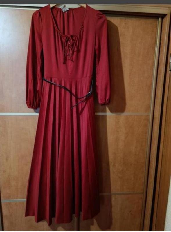 очень красивое винтажное платье в пол, рукавчик низ резинка, верх пуговки и завязки, низ юбка плиссе, насыщенный цвет вишни, от немецкого бренда Trevira, низ на подкладе