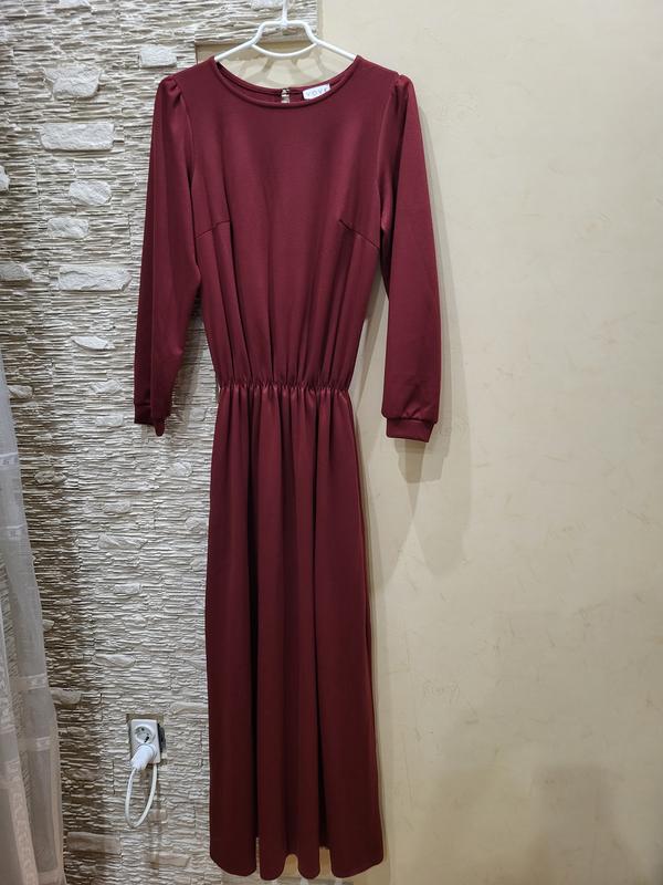 Длинное платье темно-бордового цвета. Сдержана изысканная хорошего качества в идеальном состоянии.Имеет два внутренних кармана Замеры: ТОГ( по спинке)- 50см, талия на резинке,,максимально бедра 110см( но лучше смотрится если до 100см) Длина платья- 140см.