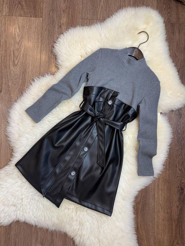 ✅️В НАЯВНОСТІ!!! Любимая моделька платья Стильное и модное платье ткань термотрикотаж+эко кожа на замше украшен декоративными пуговицами есть поясок РЕКОМЕНДУЮ! 🎈140(1 шт)-длина 71,пог 37,рукав 45 🎈146(1 шт)-длина 72, пог 38,рукав 48 🎈152(1 шт)-длина 76, пог 40,рукав 51 🎈158(1 шт)-длина 79, пог 42,рукав 53 🎈164(1 шт)-длина 82,пог 44,рукав 55