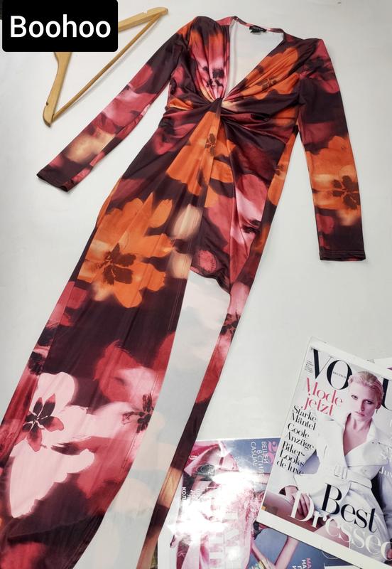 Жанр платье длинная с открытой ногой от бренда boohoo s