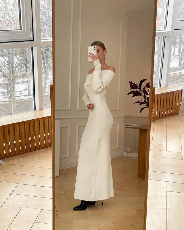 Сукня, яка завжди буде в тренді 💙 ▪️Модель -349 ▪️Розмір - 42-46, one size ▪️Тканина - тепленька, мʼяка ангора рубчик ▪️Колір - бежевий, молочний, чорний ▪Ціна - 850 грн Відкриті плечі залишаються незмінним трендом , жіночність та стриманість робить сукню доречною та вишуканою для будь-якої події 🤍Позаду сукні є розріз для зручності в русі, сяде ідеально від XS до L ✅