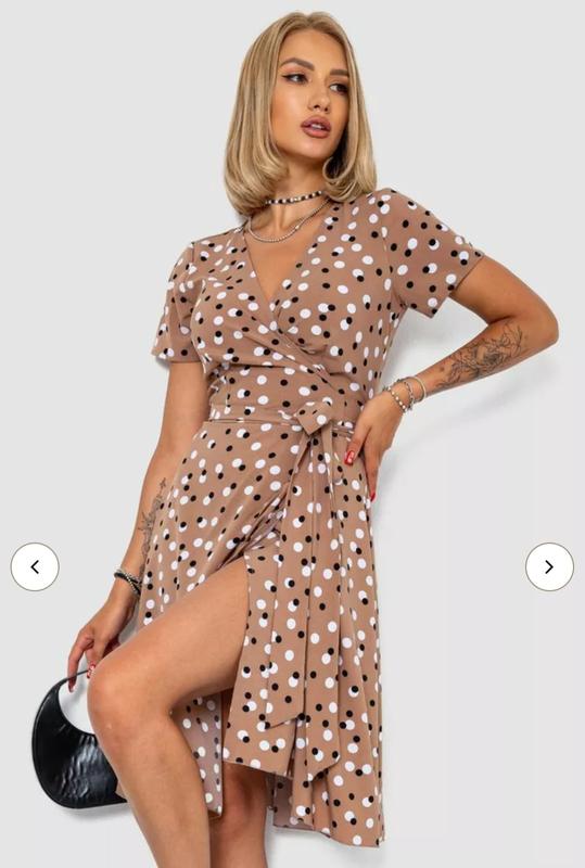 Виріз V-образный Група кольору Бежевий Декорування У горох Довжина Середньої довжини Довжина рукава З короткими рукавами Застібка з поясом Колір Бежевий Країна реєстрації бренда Україна Країна-виробник товару Україна Матеріал Софт Особливості крою Вільний Особливості моделі На запАх Особливості тканини Тягнеться Розмірна група Напівбатал; Норма Сезон Літній Склад 60% бавовна, 38% поліестер, 2% лайкра Стиль Повсякденний (casual)