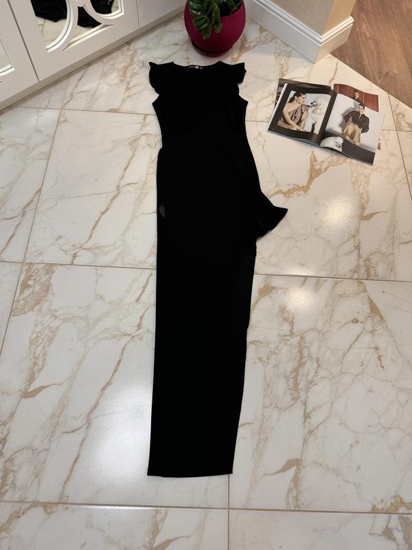 Женское вечернее платье с открытой ножкой в размере S. Стан - идеальное. Состав: 95% полиэстер, 5% эластан. Длина - 145 Бюст - 38 Талия - 30 Бедра - 38