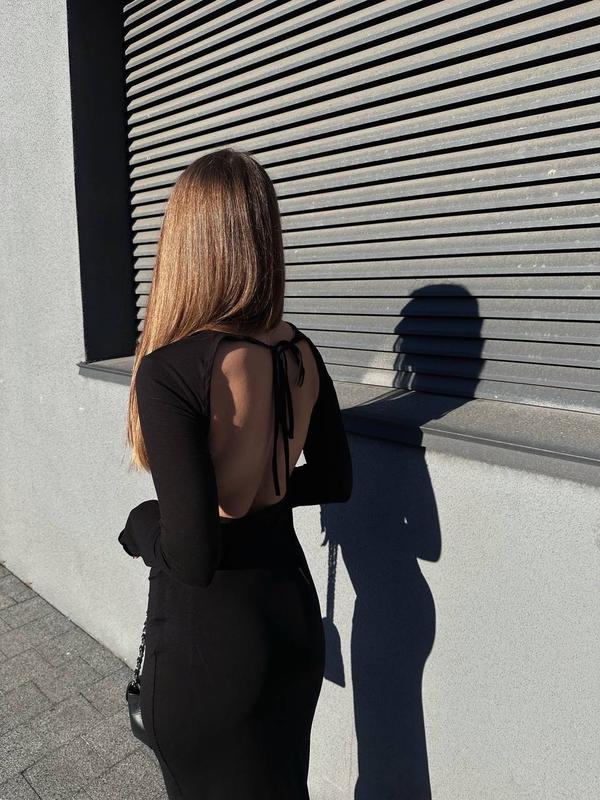 Платье длинное макси с открытой спинкой с длинным рукавом из вискозы черная облегающая