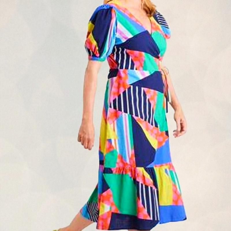 Шикарное длинное, яркое натуральное платье на запах в геометрический принт 🌈
