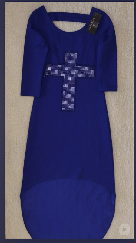 Новое с биркой , оригинальное , синее платье . Трикотаж : 50% вискоза , 50% котон . Качественные камни принт . Замеры : пог 42 см тянется до пог 49 см , поб 45 см тянется до поб 50 см , рукав 42 см. , длина спереди 87 см , длина сзади 127 см