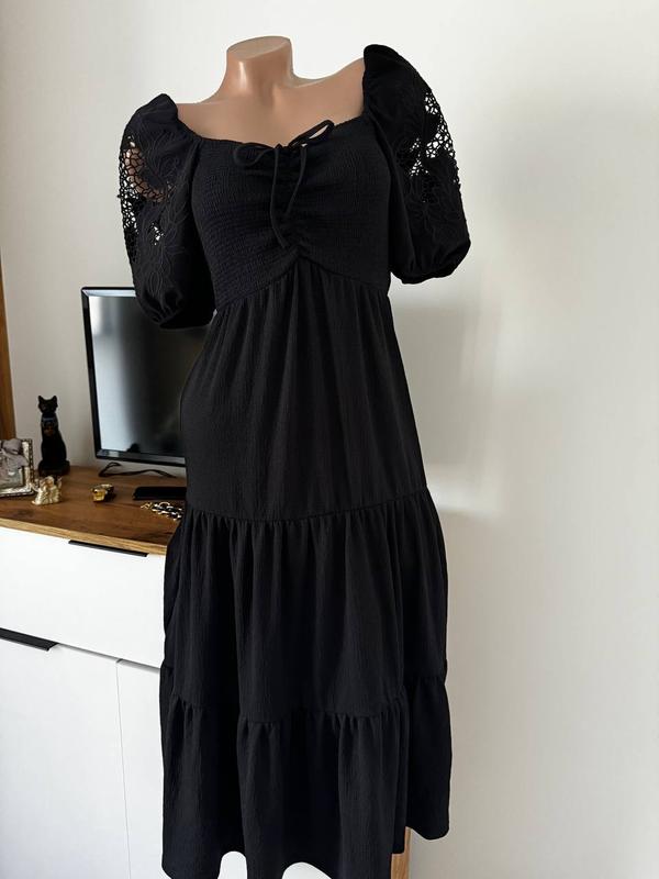 Длинное летнее стильное женское платье черного цвета Размер S ПОГ 40 см ( хорошо тянутся) ПОТ 35 см ( на резинке) Бедра свободно Длина платья 120 см