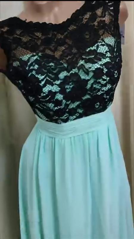 Невероятно красивое платье. Черный кружевной верх с нежно - голубым шифоновым подолом, создает романтичный и элегантный вид.
