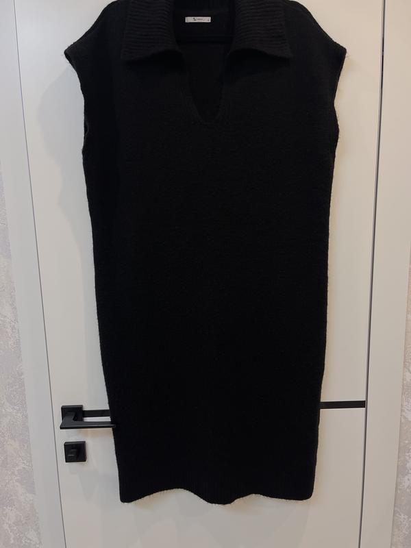 Теплое стильное платье , базовая вещь под любую водолазку или рубашку , будет стильно , состав акрил 76%, полиэстер 17%, полиамид 7%, приятное к телу Пог 58, пот 56, поб 59, длина 102, плечи 60, размер указан 14, подойдет и на больше , смотрите замеры