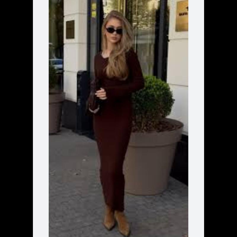 очень красивое длинное платье трендового цвета в рубчик красиво смотрится на теле состояние идеально
