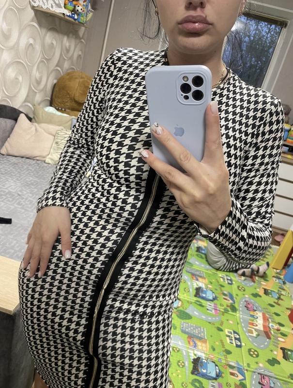 Платье с интересным принтом на молнии.Змейка как сверху так и снизу можете регулировать как хотите.Длина ниже колен.Размер S-M