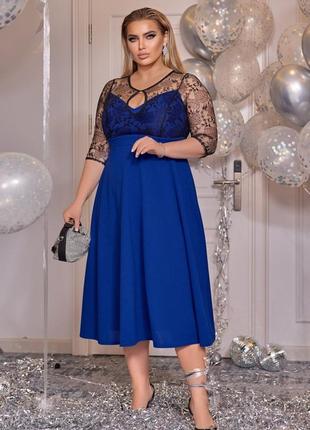 Сукня HR-7747 Цена: 860 грн. Размеры: 48-50, 52-54, 56-58, 60-62 Стильное платье А-силуэта Ткань: креп-дайвинг, гипюр Цвета: Электрик, черный, марсала, бутылка Длина батал: * сукня - 119 см. * рукав - 47 см. Платье А-силуэта ос не учитывать: Р. 48-50 ог-ОТ 106-86 Р. 52-54 ог-ОТ 112-94 Р. 56-58 ог-ОТ 120-104 Р. 60-62 ог-ОТ 126-112