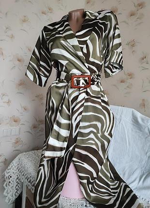 Шикарное брендовые лёгкое платье макси на запах. В плечах 38 см. Длина рукава от плеча 28 см. Сбоку на замке, прекрасно садится по фигуре. Широкий пояс с кожаной пряжкой. Красивый отложной воротник пиджачного типа. ПОГ-ПОТ-ПОБ 42-34-54 см. Длина от плеча 122 см. Ткань атлас с глянцем. Смотрится очень эффектно и стильно. Состояние новой вещи без бирки. Следы ношения отсутствуют. Дефектов нет.