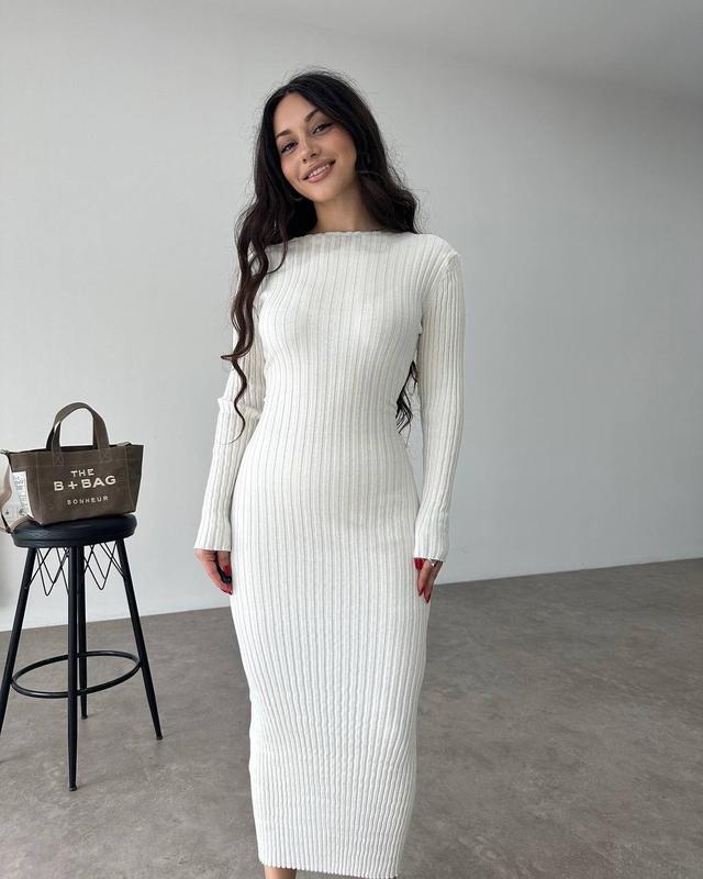 Силуетна мʼякенька довга сукня з ангори в рубчик з довгими рукавами плаття