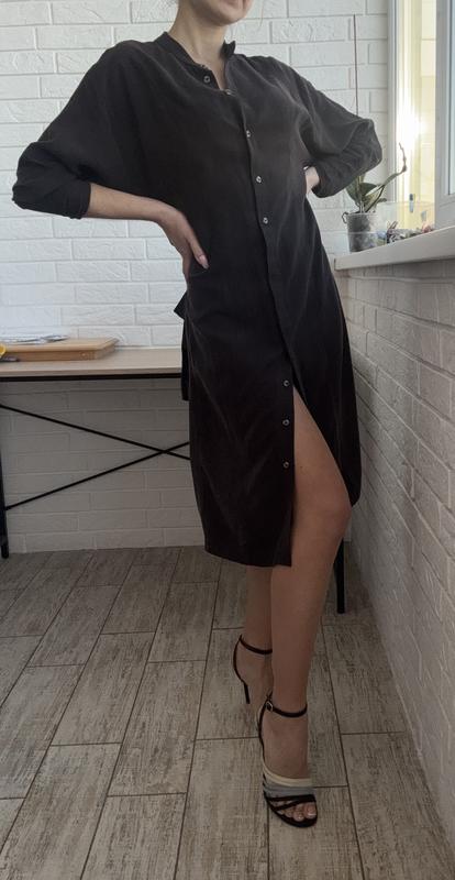 Платье халат от Mango. На пуговицах. Есть пояс. Цвет шоколад. Размер s-m
