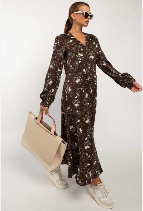 Шикарное атласное платье, халат с карманами шоколадного цвета