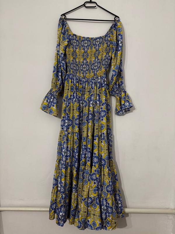 Сукня в країнському стилі довга максі міді жовто-блакитна