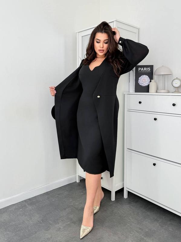 Платье арт. ha2. 2246 Тканина: креп костюмний, шифон Цвет: черный Размер: 48-50, 52-54, 56-58 Шикарное платье, которое скроет любой недостаток. Спереди на талии пуговица на петле. Сзади потайная молния.