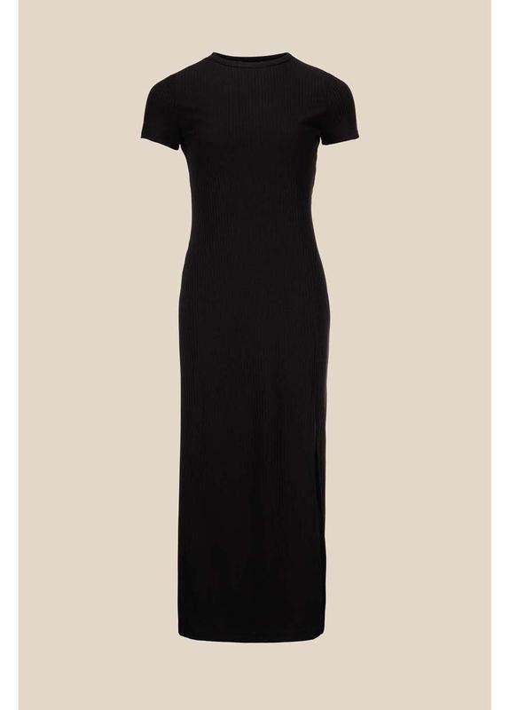платье prettylittlething, силуэтное платье в черном цвете с коротким рукавом