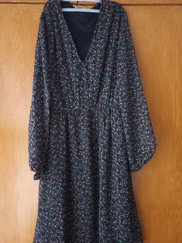 Шифоновое платье в цветы размер М, замеры скина в личные.Мое настройки:грудь 94,талия 78,бедра 100 - достаточно свободно сидит.