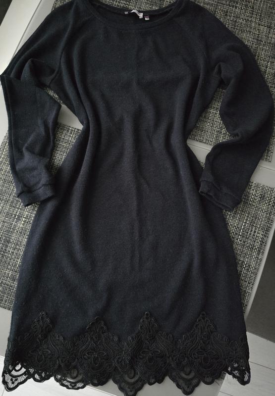 Черное платье, тонкая мягкая ткань.По низу кружево.Хорошо тянется.Длина чуть выше колена.