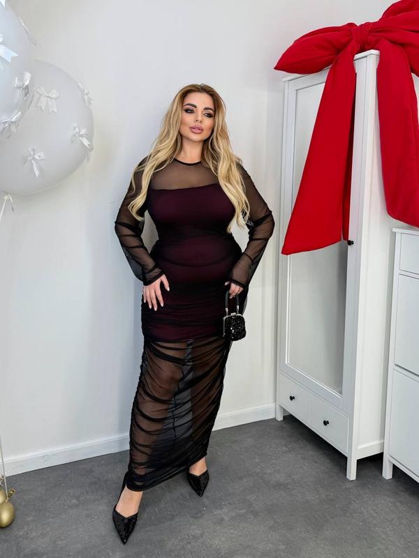 Сукня 🛍 Модель:2041 Ткань:масло трикотаж(плотный и хорошо тянется) +сетка (мягкая и тянется) Размер :48-50,52-54,56-58,60-62 Цвет:черный,марсал Длина платья : 131/132/133/134 см Длина нижнего платья :70/82/74/76 см Ты будешь самой стильной, сексуальной и звездой любого вечера! Силуэтное платье — идеальный выбор для тех, кто стремится совместить элегантность и современный стиль. Благодаря продуманному силуэту, платье выгодно подчеркивает фигуру и создает впечатление легкости. Подкладка обеспечивает комфорт и добавляет образу утонченности, позволяя вам чувствовать себя уверенно и комфортно. Такое платье станет универсальным вариантом для любого события, будь то вечеринка или романтическая встреча. Будьте в тренде с нашим стильным выбором! Замеры: 48-50 ОГ от 103 ОС 100- 118 52-54 ОГ от 113 ОС 110-128 56-58 ОГ от 123 ОС 120-138 60-62 ОГ от 133 ОС 130-148 Ткань очень тянется, можна еще тянуть)