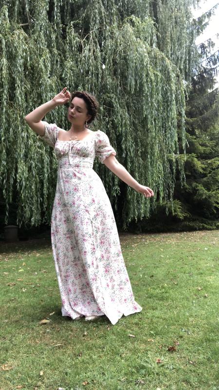 Романтичное английское длинное с разрезом пуф платье с цветами cottage core