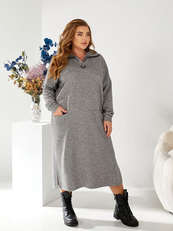 Плаття. Модель. 8266. Розміри. 50-52.54-56. Тканина. Двостороння ангора Зручна комфортна тепла сукня приємна до тіла, горловина на змійці, кишені надають стиль сукні з боків, є розрізи для більшого комфорту при ходьбі. Розміри Л. Хл. 50-52. 54-56. О. Г. 126 130 О.б.130 130 Дл.платья. 1.15 Дл.рукав. 72. Ціна 1250 грн