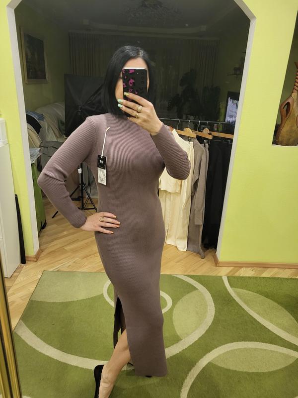 Теплое, длинное платье, трикотаж рубчик. Красиво ложится по фигурке, длина макси, со стороны имеет распорку. Хорошо тянется, с воротником. Хорошее качество, не кашлатится. Платье в одном размере подойдет на Ог от 90 до 110, Об от 90 до 110 см.