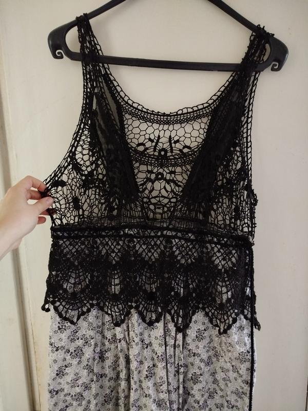 Шикарное платье с кружевом, под низ одеваете что угодно: майку, футболку, топ. Выглядит шикарно. Вверх( тот, что длиннее) кружево, низ коттон. Пог 45-50, линия под грудью +- 43, дальше на расширение к низу. Низ 78 . На рост 170 как раз но можно отогнуть. Состояние хорошее. На самой юпке с верха идут вытачки, фасон будто бочонок, но юбка прямая. Размер +- М- L. шлось по заказу в ателье, поэтому она единственный экземпляр.