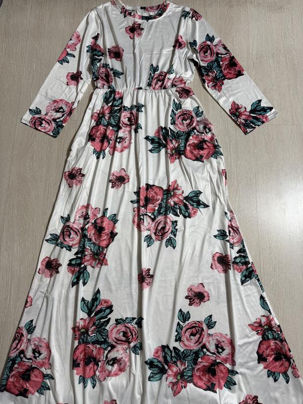 В наличии красивое длинное платье. Размер указан L. Состав: 35% котон и 65% полиестер, ткань хорошо тянется. ПОГ-51+ещё тянется, длина платья-143, полуобъём в талии-резинка...максимум тянется до 52, плечи-40, длина рукава-50, в бёдрах-свободно.