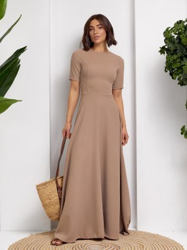 Арт: 14498_красныйАрт: 14498_темно-синийАрт: 14498_бежевыйВиміри Мы измеряем готовые изделия! Чтобы точно определить размер, сделайте замеры одежды сантиметровой лентой и сравните с таблицей. Полуобхват S M L XL Груди 41 43 46 49 Талия 35 37 39 42 Стегна 74 76 78 80 Длина изделия: 140 Рукав: 26 Ткань: средней эластичностиМатериал: Крип Состав: 59%, полиэстер, 21%, эластан, 20%, хлопок Описание платья с расклешенным низом и облегающим верхом. Модель на молнии с короткими рукавами и полукруглой горловиной. Сукня виготовлена з однотонного крепу.