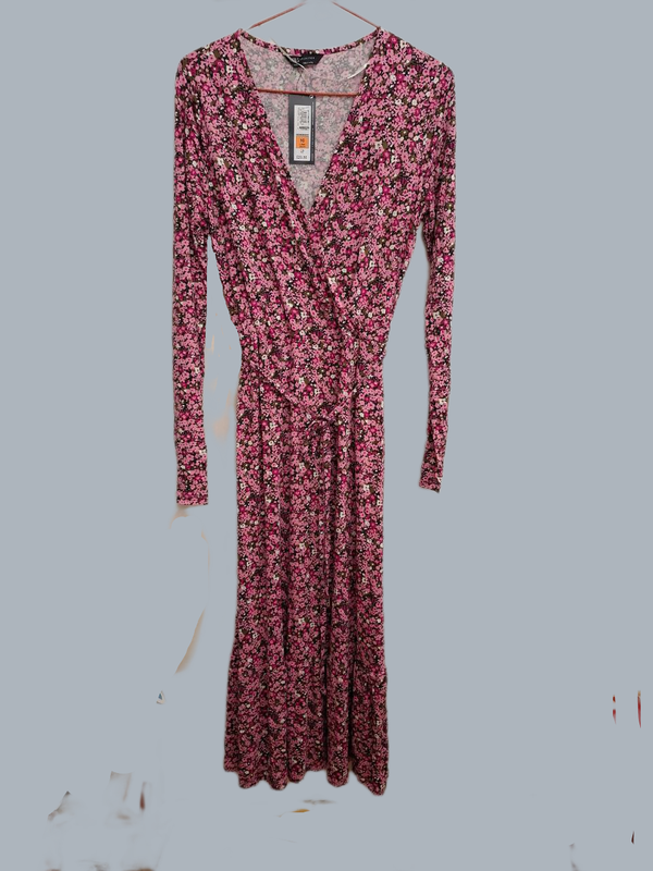 m р стильне плаття в квіточку m&s нове. без дефеків 96% віскоза 4% еластан дуже приємне до тіла відрізне по талії у талії гумка спідниця цільнокройна розкльошена ширина у плечах 39 см ПОГ 49 см ШТ 37 см у нерозтягнутому вигляді довжина рукава 69 см ДІ 129 см вказано 38 р європейський