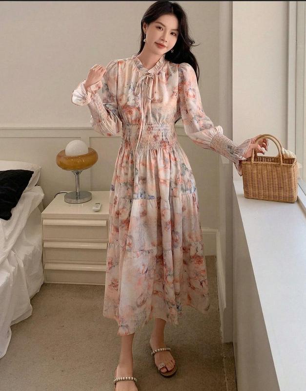 Новая, последний экземпляр! Нежное платье, рукав длинный, ткань очень приятная на ощупь, не мнется, не просвечивает. На талии и на манжетах резинки, идеальная посадка по фигуре Бренд DAZY для Shein Размер указан L, но маломерит на M Ширина под подмышками 49 см Ширина плечей 35 см Ширина по талии 35 см (резинка тянется) Длина: 125 см Длина рукава 65 см 100% Полиэстер