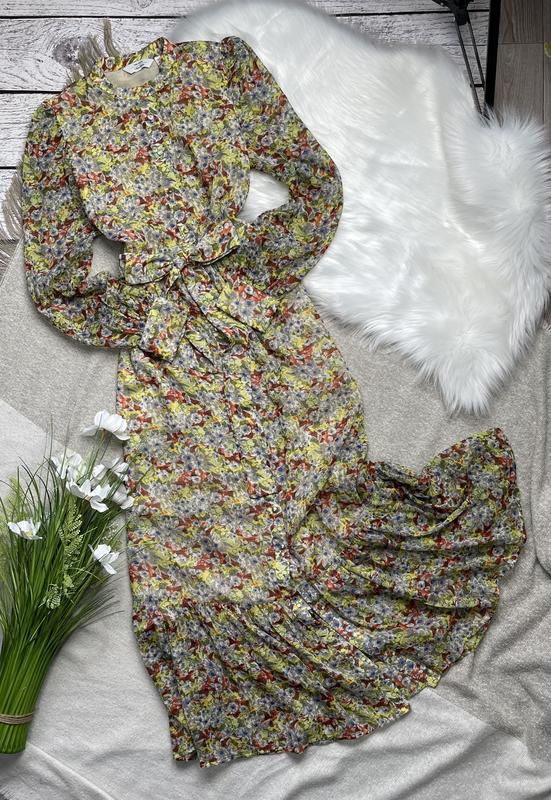 Очень красивое платье Размер 6 ( идет на С), состояние отличное, единственное не было 2-х нижних пуговиц, дошила свои, которые были (см. последнее фото) Д 130, пог 45, рук 64, пояс 41, поб свободный