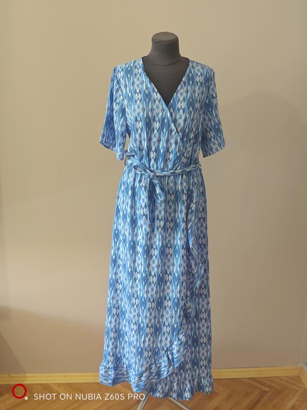 Невероятно легкое платье выполненное из узорной ткани. - Расклешенный фасон. - Короткий рукав. - V-образный вырез. - Поясной ремень.