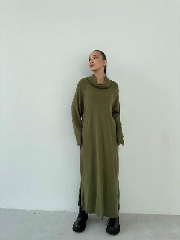 Платье, Платье. Модель 1120 Ткань основы: Ангора шерсть очень теплая, боковые разрезы, воротник хомут, пояс в комплект не входит. Ткань эластичная, хорошо тянется. Размер 42-48,50-54 Довжина виробу 137 см. ОГ 140-154 см. ОБ-130-150 Цвета: хаки, розовый