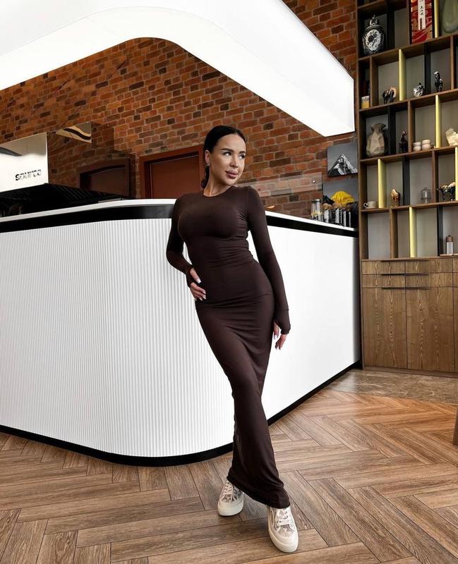 🔝🔝🔝BESTSELLER 🔝🔝🔝 🔺Платье макси ткань: микродайвинг с тонким начесом цвет: черный, шоколад размер: 42-46 (one size) Must have🔥 осень/зима 2025🔝 Плотное платье в стиле скимс в длине макси с разрезами для пальчиков💥 Идеально моделирует фигуру и согревает в прохладные дни🥰 Ткань хорошо тянется. Параметры: ОГ: 85-95 см ОС: 90-100 см Длина 150 см
