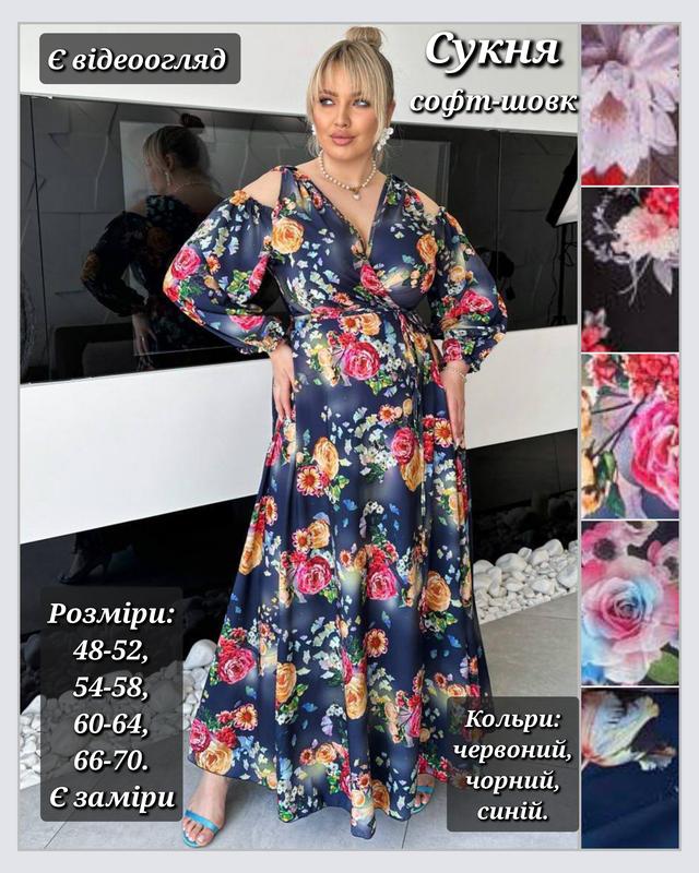 Длинное праздничное платье Арт 05636 Материал-софт шовк, длина 143 см, одевается на запах, перепонками по лифу можно регулировать декольте. Делать более-менее открытым. Если перепонки будут на плечах - декольте будет более закрыто. Если опустить их ниже- декольте откроется. Идеальная посадка. Юбка-полусолнце – не войлок. Легкое, приятное к телу. 💥48-52 - на ог 96-105, об до 125 💥54-58- на ог 107-118, о до 135 💥60-64 - на ог 120-130, об до 150 💥66-70- на ог 132-142, о до 170 Размеры: 48-52, 54-58, 60-64, 66-70 Есть видео обзор