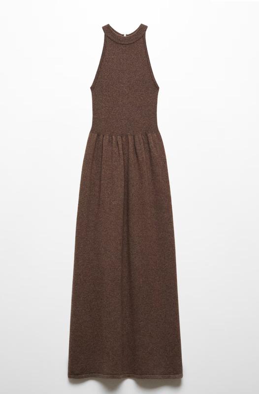 Шерстяное платье Mango. Очень приятная к телу и красиво садится по фигуре Ткань из смеси шерсти и кашемира. Средняя вязка. Длинный дизайн. Без рукавов. Застежка-молния на спинке. Состав: 55% полиамид, 40% шерсть, 5% кашемир