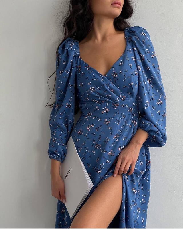 Платье с цветочным принтом, и очень привлекательное декольте 🤤 Оно идеально впишется в любое событие 🩵 На спине потайная молния, рукава сверху и снизу на резинке. 📌 Код: 246 📌 Размеры: 42-44, 46-48, 50-52 📌 Тканина: софт 💰 Цена: 1590грн (#склад56) #женское