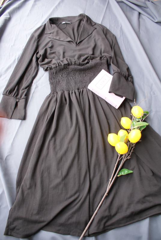 Брендовое черное платье миди длинное с воротником