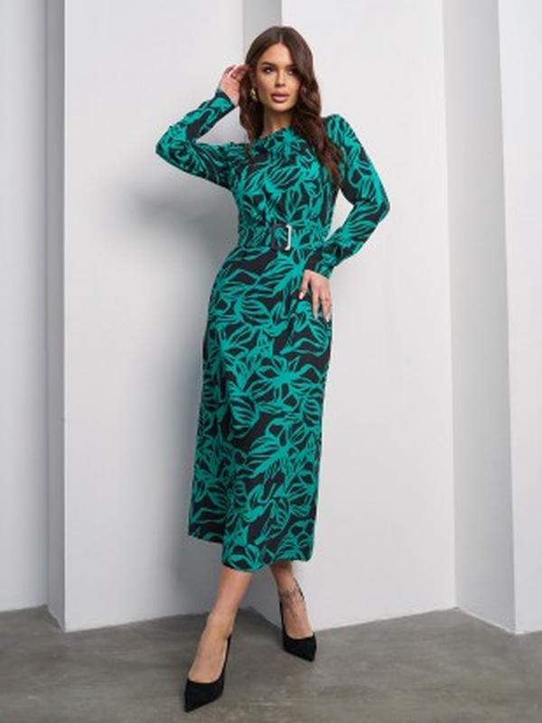 Арт: 15016_Вымеры Мы измеряем готовые изделия! Чтобы точно определить размер, сделайте замеры одежды сантиметровой лентой и сравните с таблицей. Полуобхват S M L XL Груди 43 45 47 49 Талия 36 38 40 42 Бедра 48 50 52 54 Длина изделия: 123 Рукав: 60 Ткань: низкая эластичностьМатериал: Софт Состав: 59%, полиэстер, 21%, эластан, 20%, хлопокЗелено-черное принтованное платье-роцы с облегающим верхом. Модель из софта с закрытой горловиной на пуговице и потайной застежкой-молнией. Платье миди длины с длинными прямыми рукавами и съемным поясом.