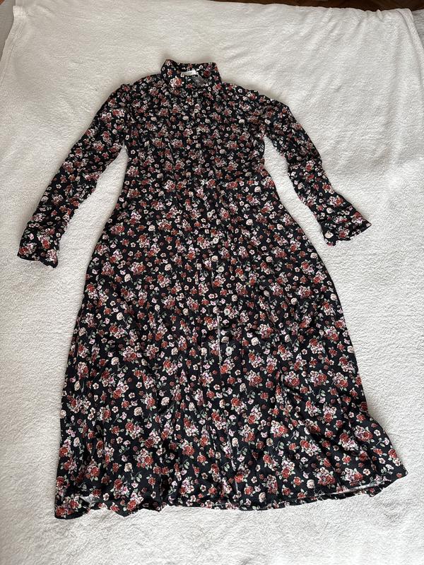 Платье- рубашка в состоянии новой вещи Ткань вискоза Размер указан Л, но я носила на М Ширина в груди 50 см Талия 39 см Бедра до 60 см Длина 105 см Плечи 40 см Рукав 57 см